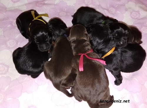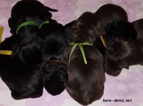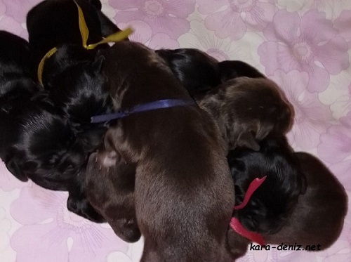 5 кобелей( 2 коричневых, 3 черных ) и 1 сука (коричневая).